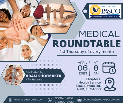 Join us as we discuss everything healthcare that affects our Greater Pasco health care industry in the area. This is a great chance for you interact with members of the healthcare community and discuss current topics in the industry.