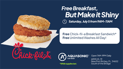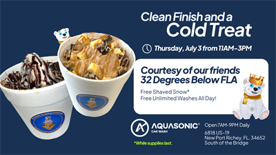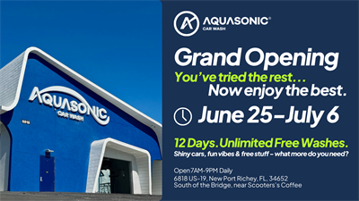 We’re AquaSonic—America’s Smartest Car Wash—and we’re officially open in New Port Richey starting June 25.