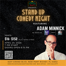 The historic Richey Suncoast Theatre is proud to announce a night of premier entertainment featuring nationally touring comedian Adam Minnick on April 24, 2026.